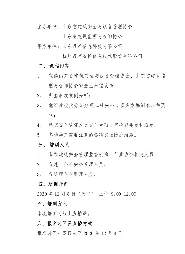 关于举办危险性较大分部分项工程安全管理专项培训的通知